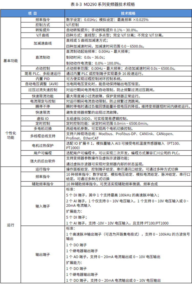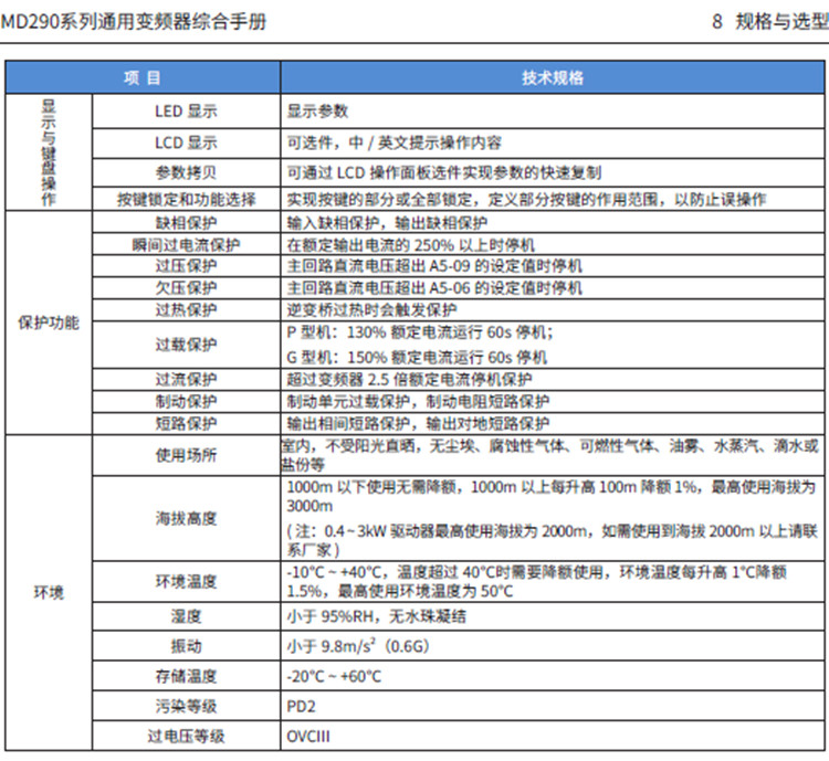 MD290 系列變頻器是一款通用型變頻器,可以輕松驅(qū)動(dòng)和控制異步電機(jī),具備用戶可編程功能及后臺(tái)軟件監(jiān)控、通訊總線功能,體積小,功能強(qiáng)大,性能穩(wěn)定,滿足國(guó)際主流標(biāo)準(zhǔn)和認(rèn)證。可應(yīng)用于紡織、造紙、拉絲、機(jī)床、包裝、食品、風(fēng)機(jī)、水泵等行業(yè)及各種自動(dòng)化生產(chǎn)設(shè)備的驅(qū)動(dòng)。